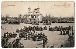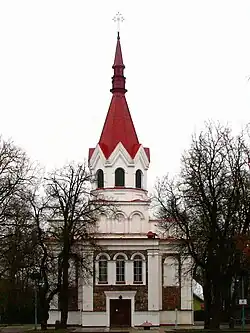 Following the Third Partition of the Polish–Lithuanian Commonwealth in 1795, the city was assigned to the Vilna Governorate.[13] In 1800, Panevėžys received a permission to build a town hall.[13][25] In 1825, the Evangelical Lutheran Church was built in Panevėžys, and the Orthodox parish was founded in 1841.[13] The city played an important role in both the November Uprising, and the January Uprising, and the fights for independence continued there after 1864.[13] In 1843, Panevėžys was assigned to the Kovno Governorate and in 1866 the town hall was replaced with a City Duma.[13]