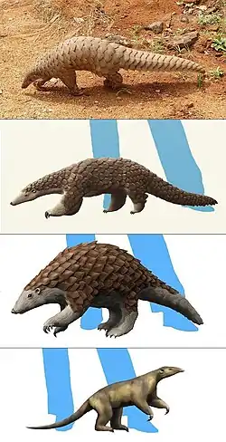 Various pangolin genera; from top down: Manis, Patriomanis, Eomanis and Eurotamandua