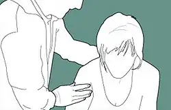 Depiction of someone with a panic attack, being reassured by another person