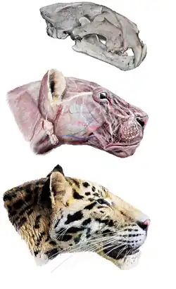 - ^ Weissengruber, G. E.; Forstenpointner, G.; Peters, G.; Kübber-Heiss, A.; Fitch, W. T. (2002). "Hyoid apparatus and pharynx in the lion (Panthera leo), jaguar (Panthera onca), tiger (Panthera tigris), cheetah (Acinonyx jubatus) and the domestic cat (Felis silvestris f. catus)". Journal of Anatomy. 201 (3): 195–209. doi:10.1046/j.1469-7580.2002.00088.x. PMC 1570911. PMID 12363272.