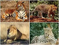| Clockwise from top-left: tiger, jaguar, leopard, lion | |