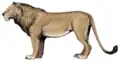 | Panthera spelaea | Much of Eurasia, 0.6 to 0.013 MYA[80] | Commonly known as the cave lion or steppe lion. Originally spelaea was classified as a subspecies of the extant lion P. leo.[81] Results of recent genetic studies indicate that it belongs to a distinct species, namely P. spelaea that is most closely related to the modern lion among living Panthera species.[82][83] Other genetic results indicate that P. fossilis also warrants status as a species.[84][85] It became extinct around 14,500-14,000 years ago.[86] | ![]() |
