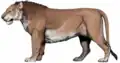 | Panthera atrox | North America, 0.13 to 0.013 MYA, with dubious remains in South America.[64] | Commonly known as the American lion, P. atrox is thought to have descended from a basal P. spelaea cave lion population isolated south of the Cordilleran Ice Sheet, and then established a mitochondrial sister clade circa 200,000 BP.[65] It was sometimes considered a subspecies either under the nomenclature of P. leo[65] or P. spelaea.[66] One of the largest Panthera species.[67] Became extinct around 13,000-12,000 years ago.[68] | ![]() |