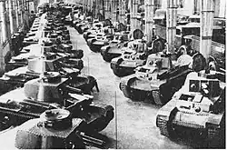 The 1st Light Division absorbed the 11th Panzer Regiment and was redesignated as the 6th Panzer Division on 18 October 1939.[28] It took 132 Pz.Kpfw. 35(t)s into the Battle of France where it was assigned to XXXXI Corps (mot.) for Panzergruppe von Kleist's attack through the Ardennes.[29] 44 of these had been lost by the end of May. 35 replacements were issued on 3 June in preparation for Fall Rot, the attack on the remnants of the French Army that began the following day.[30] A total of 62 Pz.Kpfw. 35(t)s were either total write-offs or were damaged beyond the ability of the field maintenance workshops to repair during the campaign.[31]