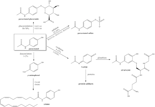 136. ^ a b c McGill MR, Jaeschke H (September 2013). "Metabolism and disposition of acetaminophen: recent advances in relation to hepatotoxicity and diagnosis". Pharm Res. 30 (9): 2174–2187. doi:10.1007/s11095-013-1007-6. PMC 3709007. PMID 23462933.