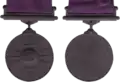 Third: The medal shall be suspended from the left breast by a plain purple-coloured ribbon of one and a quarter inches [32 mm] in width; on those occasions when only the ribbon is worn, a replica of Indra's Vajra in miniature shall be fixed in the centre of the ribbon.
