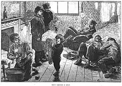 Some women organised a feminist movement, following earlier attempts in 1789 and 1848. Thus, Nathalie Lemel, a socialist bookbinder, and Elisabeth Dmitrieff, a young Russian exile and member of the Russian section of the First International, created the Women's Union for the Defence of Paris and Care of the Wounded on 11 April 1871. The feminist writer André Léo, a friend of Paule Mink, was also active in the Women's Union. Believing that the situation of women could only be improved through a global struggle against capitalism, the association demanded gender and wage equality, the right of divorce for women, the right to secular education, and professional education for girls. They also demanded suppression of the distinction between married women and concubines, and between legitimate and illegitimate children. They advocated the abolition of prostitution (obtaining the closing of the maisons de tolérance, or legal brothels). The Women's Union also participated in several municipal commissions and organised cooperative workshops.[54] Along with Eugène Varlin, Nathalie Lemel created the cooperative restaurant La Marmite, which served free food for indigents, and then fought during the Bloody Week on the barricades.[55]