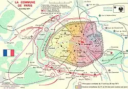 ![]() A barricade thrown up by Communard National Guard on 18 March 1871. | |||||||