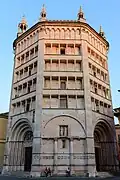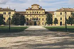 From top left: Monument to Victory, Palazzo del Governatore, Parma Cathedral, Palazzo della Pilotta with Monumento al Partigiano, Palazzo del Giardino in Parco Ducale, Baptistery of Parma, aerial view from the Baptistery | |