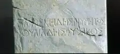 In 1969, the plinth of a statue dated to the 1st century AD was excavated in Velia. On the plinth were four words: ΠΑ[Ρ]ΜΕΝΕΙΔΗΣ ΠΥΡΗΤΟΣ ΟΥΛΙΑΔΗΣ ΦΥΣΙΚΟΣ.[33] The first two clearly read "Parmenides, son of Pires." The fourth word φυσικός (fysikós, "physicist") was commonly used to designate philosophers who devoted themselves to the observation of nature. On the other hand, there is no agreement on the meaning of the third (οὐλιάδης, ouliadēs): it can simply mean "a native of Elea" (the name "Velia" is in Greek Οὐέλια),[34] or "belonging to the Οὐλιος" (Ulios), that is, to a medical school (the patron of which was Apollo Ulius).[35] If this last hypothesis were true, then Parmenides would be, in addition to being a legislator, a doctor.[36] The hypothesis is reinforced by the ideas contained in fragment 18 of his poem, which contains anatomical and physiological observations.[37] However, other specialists believe that the only certainty we can extract from the discovery is that of the social importance of Parmenides in the life of his city, already indicated by the testimonies that indicate his activity as a legislator.[38]