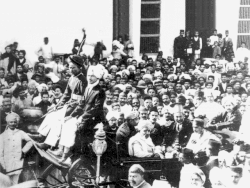 Gandhi in Bela, Bihar, after attacks on Muslims, 28 March 1947.