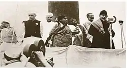 In early 1946, new elections were held in India.[71] This coincided with the infamous trial of three senior officers—Shah Nawaz Khan, Prem Sahgal, and Gurubaksh Singh Dhillon—of Subhas Chandra Bose's defeated Indian National Army (INA) who stood accused of treason. Now as the trials began, the Congress leadership, although having never supported the INA, chose to defend the accused officers and successfully rescued the INA members.[72][73]