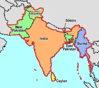 Following its creation as a new country in August 1947, Pakistan applied for membership of the United Nations and was accepted by the General Assembly on 30 September 1947. The Dominion of India continued to have the existing seat as India had been a founding member of the United Nations since 1945.[105]