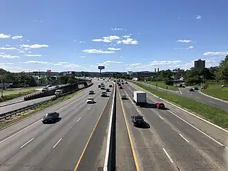 Paterson is in the southern part of Passaic County, which is near the northern edge of New Jersey, as a county that spans some hilly areas and has dozens of lakes. The county covers a region about 30 × 20 miles wide (48 × 32 km). The region is split by major roads, including portions of Interstate 80, which runs through Paterson (see map at left). The Garden State Parkway cuts across the south of Paterson, near Clifton, New Jersey. The Passaic River winds northeast past Totowa into Paterson, where the river then turns south to Passaic town, on the way to Newark, further south.