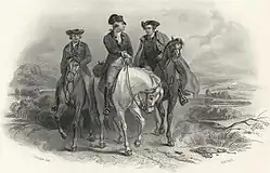At Leatherwood, Henry devoted himself to local affairs in the thinly-populated county and was given seats on the county court (the local governing body), as prominent landowners were, and on the parish vestry. He refused to be elected a delegate to Congress, stating that his personal business and past illness made that impossible. When Governor Jefferson sent a note to him in early 1780, Henry replied with gratitude, complaining of his isolation, and wrote of his many concerns about the state of affairs as the war continued. The freeholders of Henry County soon thereafter sent its eponym to the House of Delegates. But within weeks, health problems recurred, causing his return to Leatherwood.[114] While in Richmond (where the capital had been moved) Henry opposed a congressional plan to revalue Continental currency and impose certain taxes, feeling it would mostly benefit the North. He was successful in defeating it, but after he left Richmond, supporters persuaded the legislature to pass it.[115] Once he returned home, he was heavily involved in efforts to recruit local volunteers to suppress bands of Loyalists who were conducting raids in the frontier area. Henry rode with the troops, though he did not lead them, and they were generally successful in suppressing the resistance. The volunteers were disbanded in September 1780.[116]
