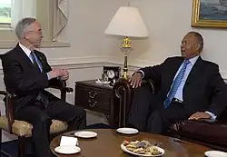 Patrick Augustus Mervyn Manning (17 August 1946 – 2 July 2016) was a Trinidadian politician who served as the fourth prime minister of Trinidad and Tobago twice from 1991 to 1995, and again from 2001 to 2010. A geologist by training, Manning served as Member of Parliament for the San Fernando East constituency from 1971 until 2015 when he was replaced by Randall Mitchell, but with the seat in 2020 being won by his son Brian Manning. Patrick Manning was the longest-serving member of the House of Representatives.[1] He was the Leader of the Opposition from 1986 to 1990 and again from 1995 to 2001.