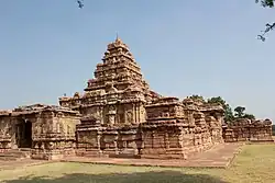 The Papanatha temple is situated apart from the main cluster of eight monuments. It is about half kilometer to the south of Virupaksha and has been dated towards the end of the Early Chalukya rule period, approximately mid-8th century.[65][66] The temple is noted for its novel mixture of Dravida, and Nagara, Hindu temple styles.[66][67]