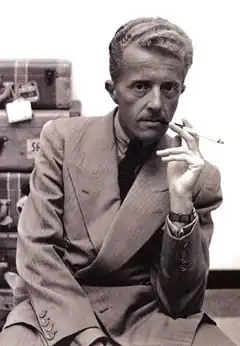 Bowles has frequently been featured in anthologies as a gay writer, although he regarded such categories as both absurd and irrelevant.[17] After a brief sojourn in France, the couple were prominent among the literary figures of New York throughout the 1940s. They briefly lived in February House in late 1939, using burlesque dancer Gypsy Rose Lee's room while she was performing in Chicago, but clashed with Benjamin Britten over use of the piano for composing, and other housemates over their noisy bedroom fantasies.[18] Bowles also worked under Virgil Thomson as a music critic at the New York Herald Tribune. His zarzuela, The Wind Remains, based on a poem by Federico García Lorca, was performed in 1943 with choreography by Merce Cunningham and conducted by Leonard Bernstein. His translation of Jean-Paul Sartre's play Huis Clos (No Exit), directed by John Huston, won a Drama Critic's Award in 1943.