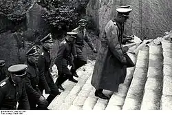 In November 1934 Hausser was transferred to the SS-Verfügungstruppe (SS Dispositional Troops; SS-VT) and assigned to the SS-Junkerschule Bad Tölz.[4] He became the Inspector of the SS-VT in 1936.[5] In this role, Hausser was in charge of the troop's military and ideological training but did not have command authority. The decision on deployment of the troops remained in Heinrich Himmler's hands. This aligned with Hitler's intentions to maintain these troops exclusively at his disposal, "neither [a part] of the army, nor of the police", according to Hitler's order of 17 August 1938.[6]