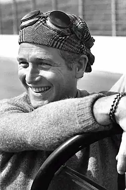 Newman was an auto racing enthusiast and first became interested in motorsports ("the first thing that I ever found I had any grace in") while training at the Watkins Glen Racing School for the filming of Winning, a 1969 film.[162] According to his instructor Bob Bondurant, his love and passion for racing, Newman agreed in 1971 to star in and to host television special Once Upon a Wheel, on the history of auto racing.[66] Newman's first professional event as a racer was in 1972 at Thompson International Speedway, quietly entered as "P. L. Newman", by which he continued to be known in the racing community.[163]