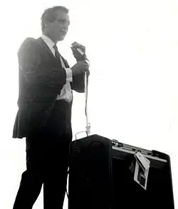 Newman was a lifelong Democrat, although he endorsed and voted for Independent candidate John B. Anderson in 1980,[143] who was a liberal Republican, instead of the incumbent Democratic president, Jimmy Carter. For Newman's support of Eugene McCarthy in 1968, effective use of television commercials in California, and his opposition to the Vietnam War, Newman was placed nineteenth on Richard Nixon's enemies list,[144] which Newman claimed was his greatest accomplishment. In 1960 he endorsed Gore Vidal's congressional run and in 1964, he and his wife, Joanne Woodward, supported Lyndon B. Johnson for president.[145][146] During the 1968 presidential election, Newman supported Democratic nominee Hubert Humphrey and appeared in a pre-election night telethon for him.[147][148] He was also described as a "vocal supporter" of gay rights and same-sex marriage.[149][150]