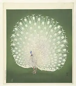 Japanese woodblock print of a white peacock, by Ohara Koson (小原 古邨), 1925–1936