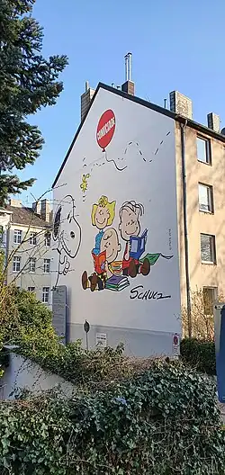 Cartoon tributes have appeared in other comic strips since Schulz's death in 2000 and are often displayed at the Charles Schulz Museum in Santa Rosa, California.[89] On May 27, 2000, many cartoonists collaborated to include references to Peanuts in their strips. Originally planned as a tribute to Schulz's retirement, after his death that February, it became a tribute to his life and career. Similarly, on October 30, 2005, several comic strips again included references to Peanuts and specifically the It's the Great Pumpkin, Charlie Brown television special. On November 26, 2022, over 100 cartoonists included references to Peanuts and Charles Schulz in their strips to celebrate his 100th birthday.[90]
