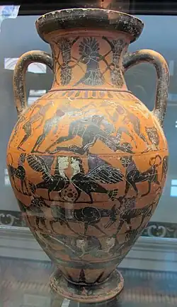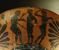 Greek vase painting is a major source for scholars seeking to understand attitudes and practices associated with paiderastia.[62] Hundreds of pederastic scenes are depicted on Attic black-figure vases.[63] In the early 20th century, John Beazley classified pederastic vases into three types: