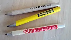 Carpenter's pencils are pencils that have two main properties: their shape prevents them from rolling, and their graphite is strong.[40] The oldest surviving pencil is a German carpenter's pencil dating from the 17th century and now in the Faber-Castell collection.[41][42]