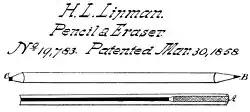 - ^ Lipman, L. (30 March 1858). "US Patent 19783 Combination of Lead-Pencil and Eraser". Patft.uspto.gov. Archived from the original on 2 May 2017. Retrieved 23 July 2009.