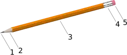 - Solid pigment core (typically graphite, commonly called pencil lead)