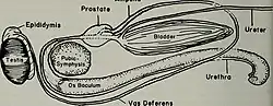 In most species of animals in which there is an organ that might be described as a penis, it has no major function other than intromission, or at least conveying the sperm to the female, but in the placental mammals, the penis bears the distal part of the urethra, which discharges both urine during urination and semen during copulation.[3]