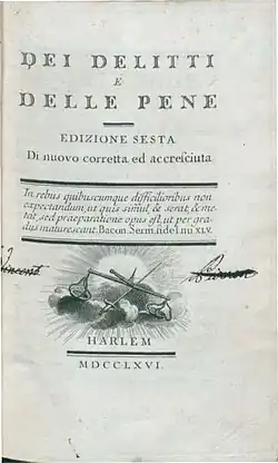- ^ Marcello Maestro, "A pioneer for the abolition of capital punishment: Cesare Beccaria." Journal of the History of Ideas 34.3 (1973): 463-468. online