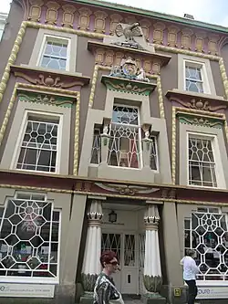 Gas lighting was introduced in 1830 and the old Market House was demolished in 1836. Its replacement, designed by W. Harris of Bristol, was completed at the top of Market Jew Street in 1838. (The name Market Jew comes from the Cornish language Marghas Yow, meaning Thursday Market, the name of a nearby village now absorbed into Marazion, to which Market Jew Street leads.[51]) St Mary's Church, another prominent feature of the Penzance skyline, was completed in 1836, while a Roman Catholic church was built in 1843. Another familiar building from this period is the eccentric Egyptian House in Chapel Street, built in 1830. The first part of the Promenade along the sea front dates from 1844.