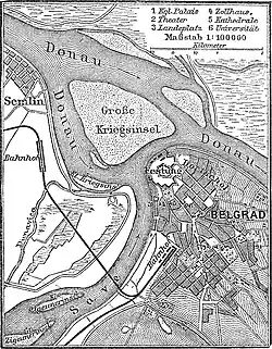 1890 map showing proximity of Zemun (Semlin), river Sava and Belgrade