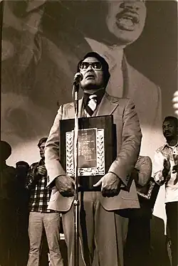 Jones used his position at the Housing Authority to lead the fight against the eviction of tenants from San Francisco's International Hotel.[110] The Temple further forged an alliance with San Francisco's Black community newspaper, the Sun Reporter publisher Dr. Carlton Goodlett and it received frequent favorable mentions in that paper.[111] It also received frequent favorable coverage from San Francisco Chronicle columnist Herb Caen and other local newspaper and television reporters.[112]
