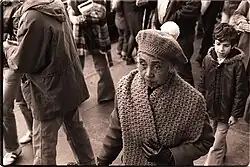 The Temple distinguished itself from most new religious movements with its overtly political message.[99] It combined those genuine political sympathies with the perception that it could help turn out large numbers of votes to gain the support of a number of prominent politicians.[100] Jones made it known after he moved to San Francisco that he was interested in politics, and legal changes in the way San Francisco elections were held strengthened the power of neighborhood groups and civic organizations such as the Temple.[101][102]
