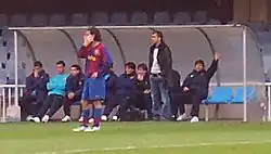 Guardiola was appointed manager of Barcelona B on 21 June 2007 with Tito Vilanova as his assistant. Under his guidance, the team subsequently won their Tercera División group and qualified for the 2008 Segunda División B playoffs, which the team won, thereby achieving promotion.[56] Barcelona President Joan Laporta announced in May 2008 that Guardiola would be appointed manager of the senior Barcelona squad to replace Frank Rijkaard at the end of the 2007–08 season.[57]