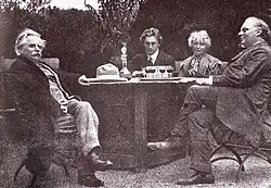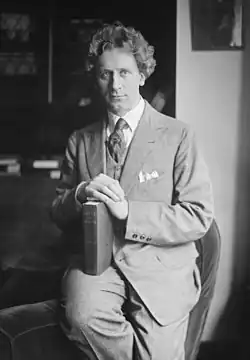 As his stature in the music world increased, Grainger became acquainted with many of its leading figures, including Vaughan Williams, Elgar, Richard Strauss and Debussy.[29] In 1907 he met Frederick Delius, with whom he achieved an immediate rapport – the two musicians had similar ideas about composition and harmony, and shared a dislike for the classical German masters.[30] Both were inspired by folk music;[31] Grainger gave Delius his setting of the folk song Brigg Fair, which the older composer developed into his well-known orchestral rhapsody, dedicated to Grainger.[30] The two remained close friends until Delius's death in 1934.[32]
