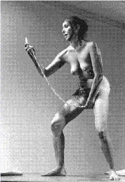 Joan Jonas during a performance documented on video and installed, 1972 -