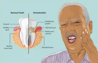 1. ^ a b c d e f g h "Gum Disease". National Institute of Dental and Craniofacial Research. February 2018. Retrieved 13 March 2018.
