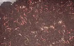 Vermicomposting is a common practice in permaculture. The practice involves using earthworms, such as red wigglers, to break down green and brown waste. The worms produce worm castings, which can be used to organically fertilize the garden. Worms are also introduced to garden beds, helping to aerate the soil and improve water retention. Worms may multiply quickly if provided conditions are ideal.[60][61] For example, a permaculture farm in Cuba began with 9 tiger worms in 2001 and 15 years later had a population of over 500,000.[62] The worm castings are particularly useful as part of a seed starting mix and regular fertilizer. Worm castings are reportedly more successful than conventional compost for seed starting.[61]