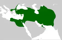 Following the Arab conquest of the Sasanian Empire in the medieval times, the Arab caliphates established their rule over the region for the next several centuries, during which the long process of the Islamization of Iran took place. Confronting the cultural and linguistic dominance of the Persians, beginning by the Umayyad Caliphate, the Arab conquerors began to establish Arabic as the primary language of the subject peoples throughout their empire, sometimes by force, further confirming the new political reality over the region.[67] The Arabic term ʿAjam, denoting "people unable to speak properly", was adopted as a designation for non-Arabs (or non-Arabic speakers), especially the Persians.[68] Although the term had developed a derogatory meaning and implied cultural and ethnic inferiority, it was gradually accepted as a synonym for "Persian"[67][69][70] and still remains today as a designation for the Persian-speaking communities native to the modern Arab states of the Middle East.[71] A series of Muslim Iranian kingdoms were later established on the fringes of the declining Abbasid Caliphate, including that of the ninth-century Samanids, under the reign of whom the Persian language was used officially for the first time after two centuries of no attestation of the language,[72] now having received the Arabic script and a large Arabic vocabulary.[73] Persian language and culture continued to prevail after the invasions and conquests by the Mongols and the Turks (including the Ilkhanate, Ghaznavids, Seljuks, Khwarazmians, and Timurids), who were themselves significantly Persianized, further developing in Asia Minor, Central Asia, and South Asia, where Persian culture flourished by the expansion of the Persianate societies, particularly those of Turco-Persian and Indo-Persian blends.