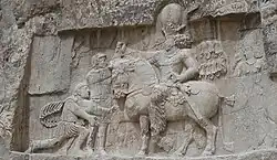 A bas-relief at Naqsh-e Rustam depicting the victory of Sasanian ruler Shapur I over Roman ruler Valerian and Philip the Arab