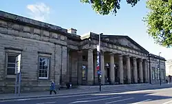 Perth's Sheriff Court, on Tay Street, is a Category A listed building. The building was designed by London architect Sir Robert Smirke, built in 1819 and stands on the site of Gowrie House, the place where a plot to kill King James VI was hatched in 1600.[31]
