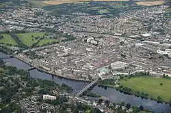 Perth (/ˈpɛrθ/ ⓘ; Scottish Gaelic: Peairt [pʰɛrˠʃtʲ])[4][5] is a centrally located Scottish city, on the banks of the River Tay. It is the administrative centre of Perth and Kinross council area and is the historic county town of Perthshire. It had a population of about 47,350 in 2020.[3]