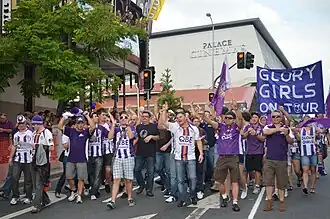Perth also developed a rivalry with former National Soccer League side Melbourne Knights. This rivalry started forming when the two sides competed against each other in a vital league match to qualify for finals during Glory's inaugural season, which featured crowd violence and Perth player Paul Strudwick being sent off. Glory eventually lost the game 1–3, ending their hopes of finals in their first season.[10][16] In May 2001 in a finals match played in Melbourne between the two sides, Perth player Bobby Despotovski performed a Serbian salute, enraging Melbourne Knights supporters who are prominently Croatian Australian. This led to Knights fans assaulting Despotovski and Glory manager Bernd Stange prior to them boarding the Perth team bus. This prompted Glory fans to plan retaliatory attacks against Melbourne's team bus prior to the second leg of the match.[33][244][245] The two sides have not played each other since the demise of the NSL in 2004.[246]