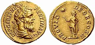 After Pertinax’s death, the Guard notoriously auctioned the throne, which was purchased by Didius Julianus.[23] Julianus lasted only weeks before being replaced by Septimius Severus, who honoured Pertinax by executing his killers, securing his deification, and adopting “Pertinax” into his own name.[24]