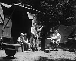 watched square-dance teams from Bear Wallow, Happy Hollow, Cane Creek, Spooks Branch, Cheoah Valley, Bull Creek, and Soco Gap; heard the five-string banjo player Samantha Bumgarner; and family string bands, including a group of Indians from the Cherokee reservation who played string instruments and sang ballads. They wandered among the crowds who camped out at the edge of the field, hearing music being made there as well. As Lunsford's daughter would later recall, those country people "held the riches that Dad had discovered. They could sing, fiddle, pick the banjos, and guitars with traditional grace and style found nowhere else but deep in the mountains. I can still hear those haunting melodies drift over the ball park."[22]