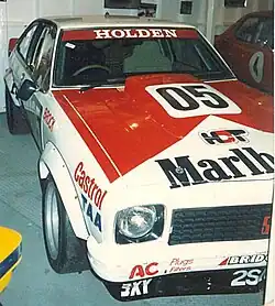 Peter Geoffrey Brock AM (26 February 1945 – 8 September 2006), known as "Peter Perfect",[3] "The King of the Mountain", or simply "Brocky", was an Australian motor racing driver. Brock was most often associated with Holden for almost 40 years, although he raced vehicles of other manufacturers including BMW, Ford, Volvo, Porsche and Peugeot.[4] He won the Bathurst 1000 endurance race nine times, the Sandown 500 touring car race nine times, the Australian Touring Car Championship three times, the Bathurst 24 Hour once and was inducted into the V8 Supercars Hall of Fame in 2001. Brock's business activities included the Holden Dealer Team (HDT) that produced Brock's racing machines as well as a number of modified high-performance road versions of his racing cars.